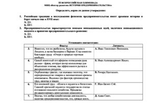ОЛИМПИАДА ИСТОРИЯ ПРЕДПРИНИМАТЕЛЬСТВА