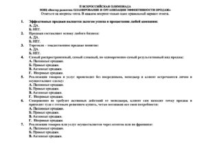 ОЛИМПИАДА ПЛАНИРОВАНИЕ И ОРГАНИЗАЦИЯ ЭФФЕКТИВНОСТИ ПРОДАЖ (1)