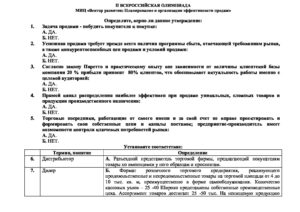Олимпиада Планирование и организация эффективности продаж